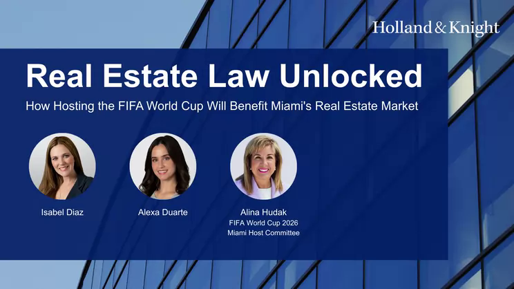 The 2026 FIFA World Cup is coming to Miami, and the implications will reach far beyond the stadium. Partner Isabel Diaz and Associate Alexa Duarte sit down with Alina Hudak, president and CEO of the FIFA World Cup 2026 Miami...more