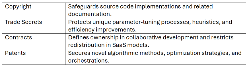 Algorithmic Frameworks represent the “logic layer” behind AI: the reusable code, optimization engines, and orchestration modules that determine how models are trained and deployed.10 For SMEs, frameworks may be the most scalable and licensable form of IP because they have the potential to be applied across multiple industries.