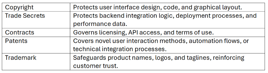 Aside from generating revenue, Deployed Applications can also carry reputational significance for a firm by being the tangible proof of AI maturity, and the bridge between technical innovation and user trust. Protecting these assets with layered IP and brand strategies is becoming increa