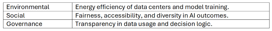 Embedding ESG alignments into AI governance can also mitigate risk, enhance brand trust, and maintain investor confidence.