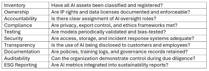 Table 22: AI Governance Checklist