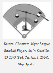 The US Court of Appeals for the Federal Circuit sustained the Trademark Trial & Appeal Board’s refusal to register trademark applications (over oppositions) for two character marks and a design mark based on the Board’s finding of likelihood of confusion with the common law rights of a world-famous baseball player and major league baseball’s players association as supported by substantial evidence and consistent with trademark law. Chisena v. Major League Baseball Players Ass’n, Case No. 23-2073 (Fed. Cir. Jan. 8, 2026) (Hughes, Freeman, Lourie, JJ.) (nonprecedential).