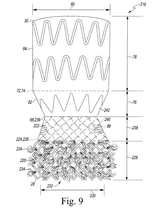 and structure 216 identified in a dual-frame endo-graft device illustrated by this Figure 9: