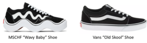 Vans argued MSCHF’s “Wavy Baby” shoes infringed upon their signature “Old Skool” shoe’s trade dress, as well as, its trademarked logo. Van’s asserted its “Old Skool” shoe included a combination of protected trade dress elements, including: (1) the Vans Side Stripe Mark on the upper shoe; (2) a rubberized sidewall of uniform height around the shoe’s perimeter; (3) a three-tiered or grooved sidewall; (4) a textured toe box; (5) visible stitching; and (6) the placement and proportion of each of these elements in relation to one another.