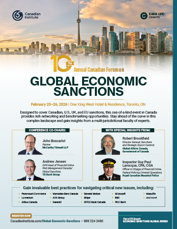 Canadian Institute's 10th Annual Canadian Forum on Global Economic Sanctions brings together leading regulators, enforcement officials, compliance professionals, and top decision-makers.