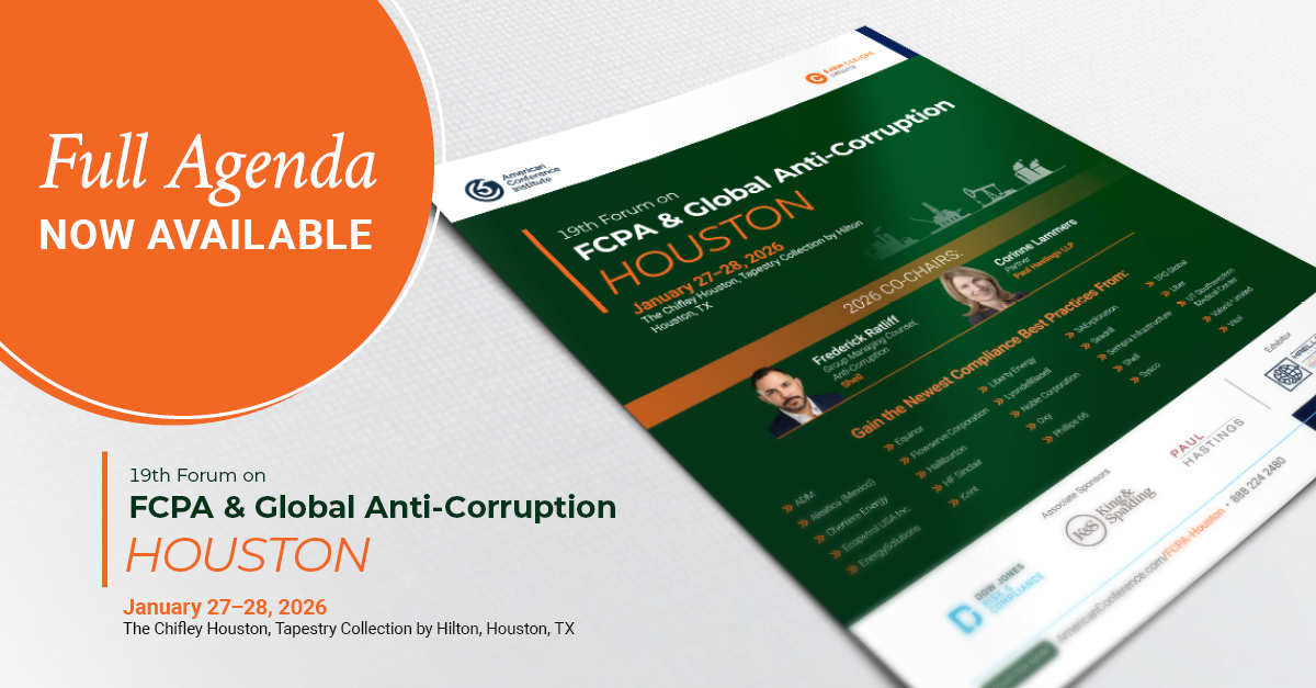 Connect with senior legal and compliance leaders later this month at ACI’s 19th Forum on the FCPA & Global Anti-Corruption Houston.