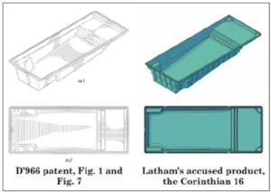It is hard for me to look at the patented pool design and the accused product and agree that no reasonable juror could find that their overall appearance is substantially similar. Here too, could the framing “plainly dissimilar” rather than “substantially similar” have impacted the outcome?[14]