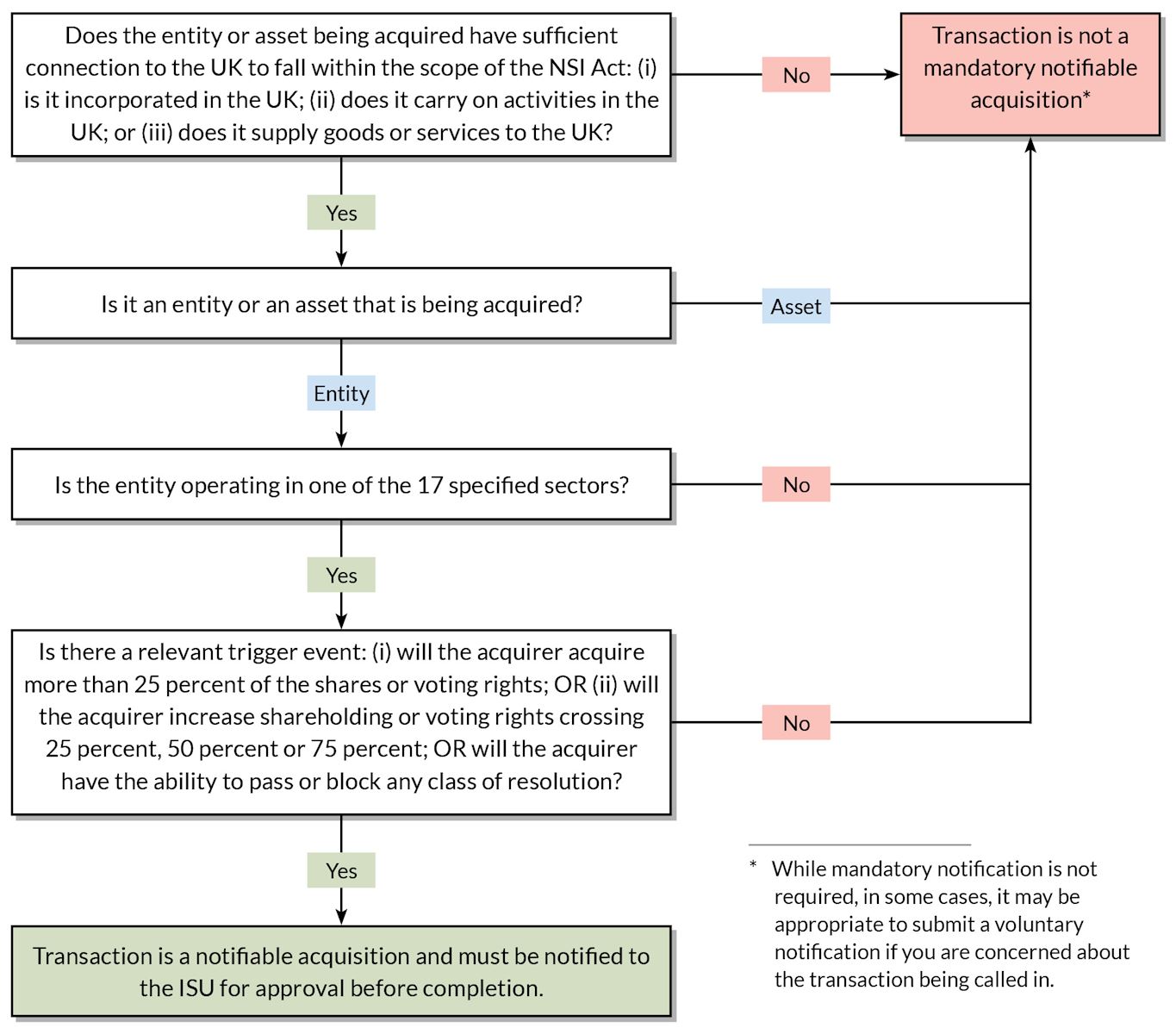 A flowchart to assess whether a transaction is notifiable appears at the end of this article.