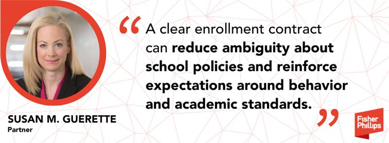 Although there are many helpful provisions that should be included in enrollment contracts, these particular provisions help to avoid confusion and ensure schools and families have the same expectations for how issues will be addressed.