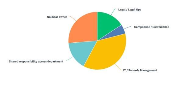 In the survey, respondents most often identified IT or records management as the primary owner. Legal or legal operations teams were the next most frequently cited, and more than a quarter of respondents reported that responsibility is formally shared across departments rather than owned by a single function.