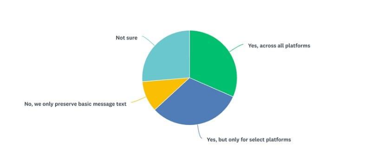 Only about a third of respondents confirm that their systems preserve full context across all platforms. Others preserve full context only in select environments, capture only basic message text, or are unsure what their systems retain.