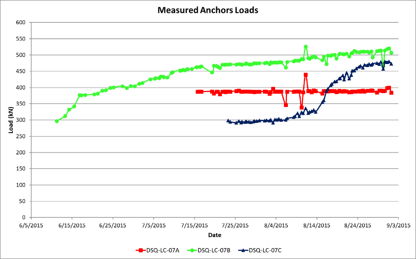 Similarly, for the anchors loads, the measured and the calculated values are presented in the figures below.
