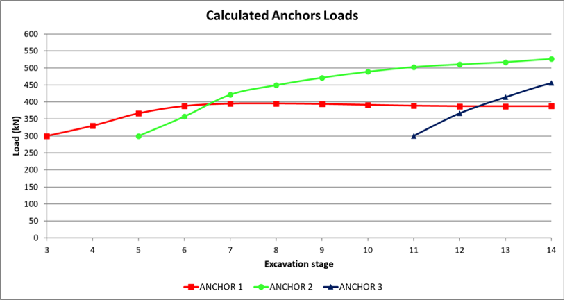 Figure 7: Calculated anchors’ loads for the remaining excavation stages.