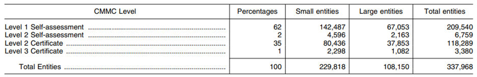 In addition, do not be lulled into complacency by the possibility of achieving Level 2 compliance through a self-assessment. The statistics published in the September 10 final rule show that most contractors (35% total compared to 2% for self-assessment) that need Level 2 CMMC will be required to have an assessment by 3PAOs, a process that can easily take 12 months or more. And whether a 3PAO assessment will be required is something that will be determined by agency contracting officers on a solicitation-by-solicitation basis, making it difficult to predict when such a third-party assessment will be required. The bottom line is that if on November 10 you are competing for a federal award needing CMMC Level 2 certification and you have not begun the process, you might find yourself in trouble.