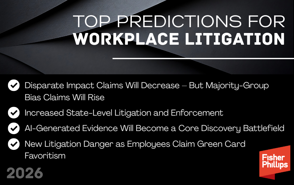 Our Litigation and Trials thought leaders pulled together their top predictions for the new year so that employers can get a running start to 2026.