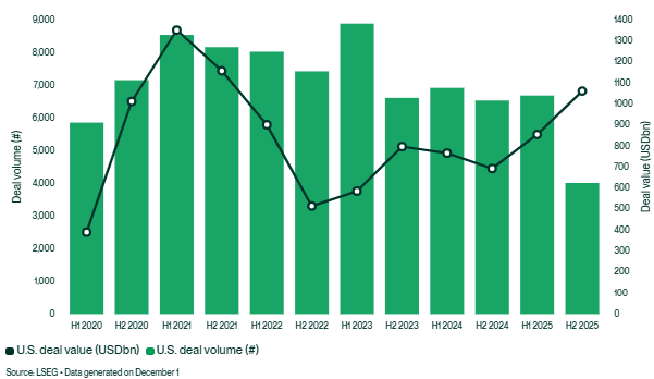 North America: deal value surges in H2 2025