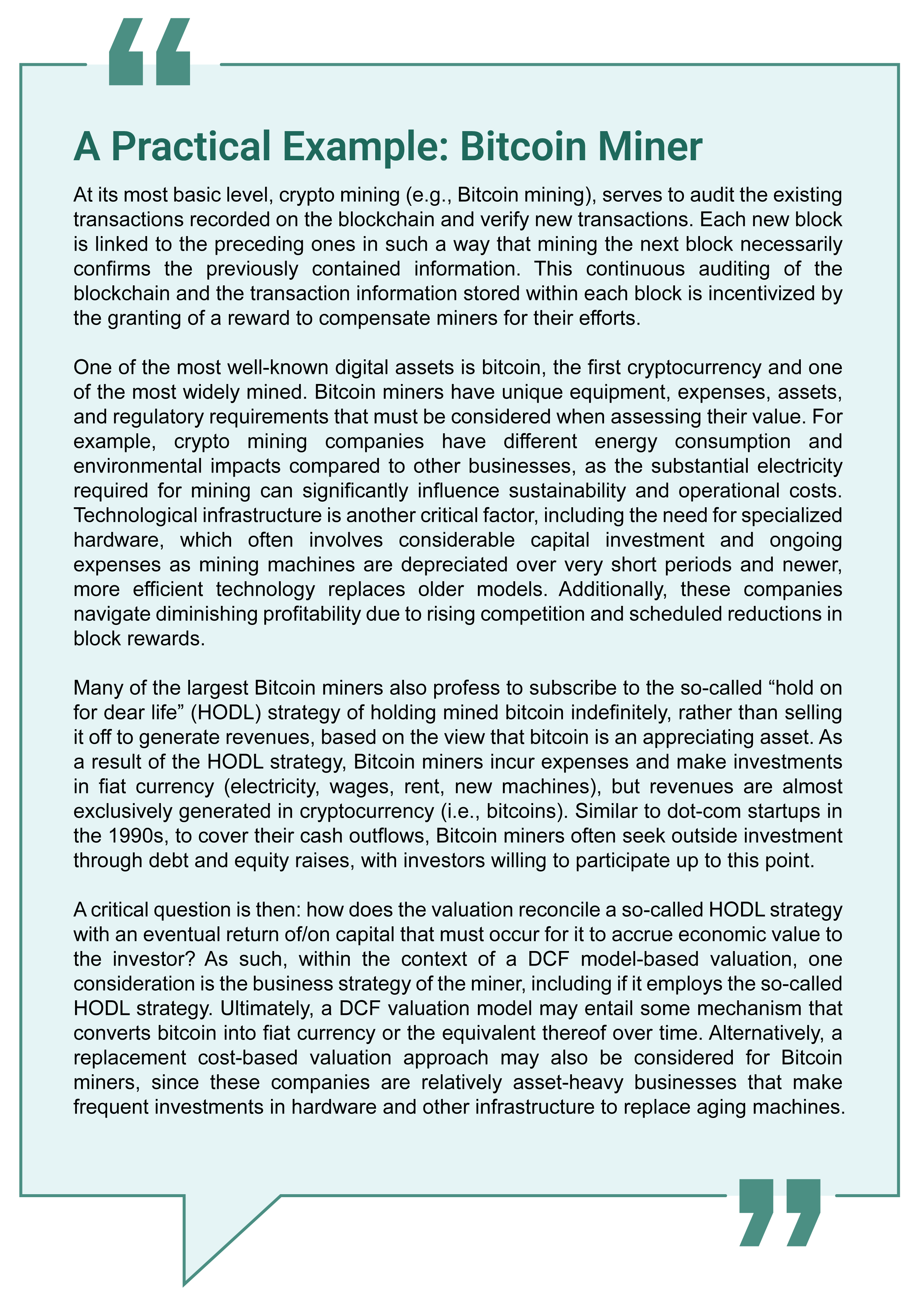 As cryptocurrency investing and the popularity of digital asset companies continue to rise, investors and courts must consider what approaches and methods to apply in conducting fair and accurate valuations of companies operating across the digital assets industry. Relying on misleading or inapplicable criteria could lead to over- (or under-) valuations.