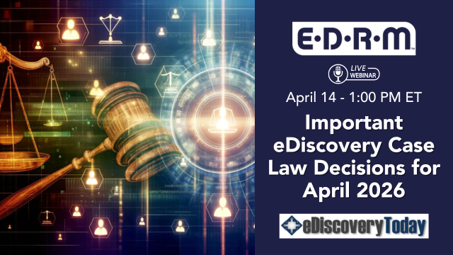 Interesting eDiscovery case law rulings are blooming! In our April 2026 monthly webinar of cases covered by the eDiscovery Today blog, we will discuss disputes related to quashing a subpoena seeking ESI from LinkedIn, intent to deprive sanctions for selling a cell phone during litigation, default judgment sanctions for intentional ESI spoliation, compelling discovery of ephemeral messaging ESI, sanctions for non-party failing to comply with a subpoena and challenging that an audio recording is a deepfake!