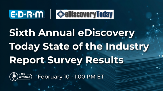Join EDRM and eDiscovery Today to learn the results of the Sixth Annual eDiscovery Today State of the Industry Report Survey and join in the discussion with Doug Austin, Editor, eDiscovery Today, and Mary Mack, CEO and Chief Legal Technologist of EDRM.