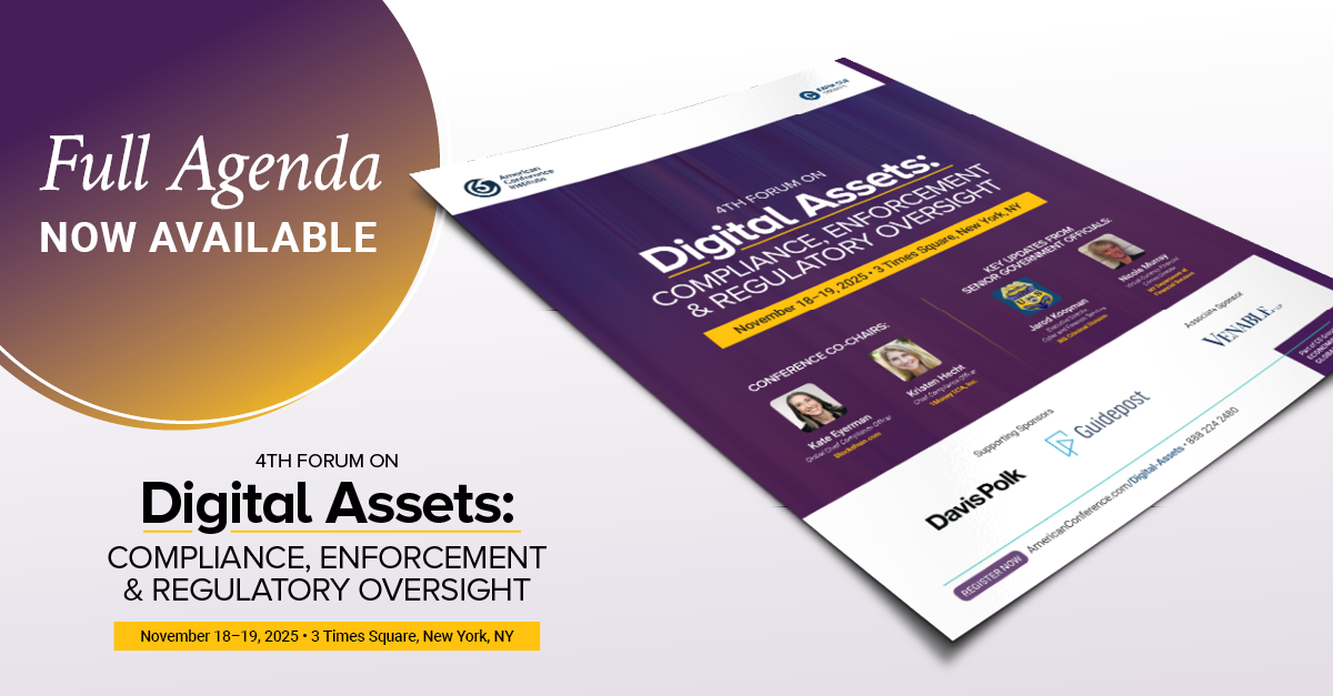 Attend ACI's 4th Forum on Digital Assets: Compliance, Enforcement & Regulatory Oversight to gain the critical insights you need to navigate this high-growth, high-stakes space.